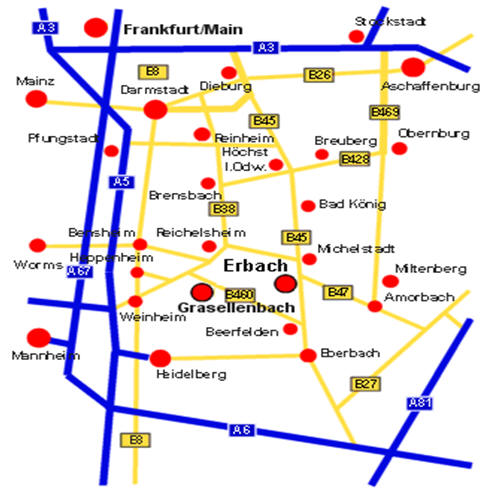 Grasellenbacb by train and bus, one hour by car from Frankfurt or Heidelberg